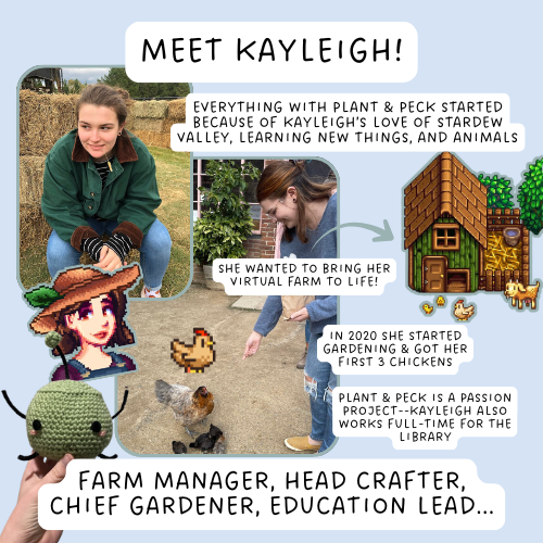 My name is Kayleigh, and the farm and market aspects of Plant & Peck are run almost entirely by me (with some help from family along the way). I describe Plant & Peck as a community-oriented micro-farm, where we focus not only on what we produce, but what we can share with the community as well through craft workshops, education, and more