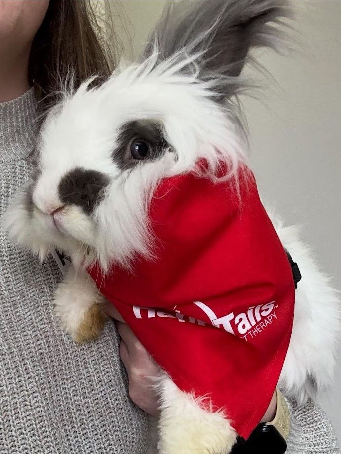 I have also fallen totally in love with Angora rabbits. My first bunny, Alfie, is a certified therapy animal with Happy Tails Pet Therapy and can also be found regularly at the West Cobb Library and accompanying me at markets. We also offer school & camp visits. The others, though slightly less personable, also make appearances at friends’ farms, community events, library socials, and more. Now that I’ve mastered their care, I am learning more about working with their fiber, which is unbelievably soft.