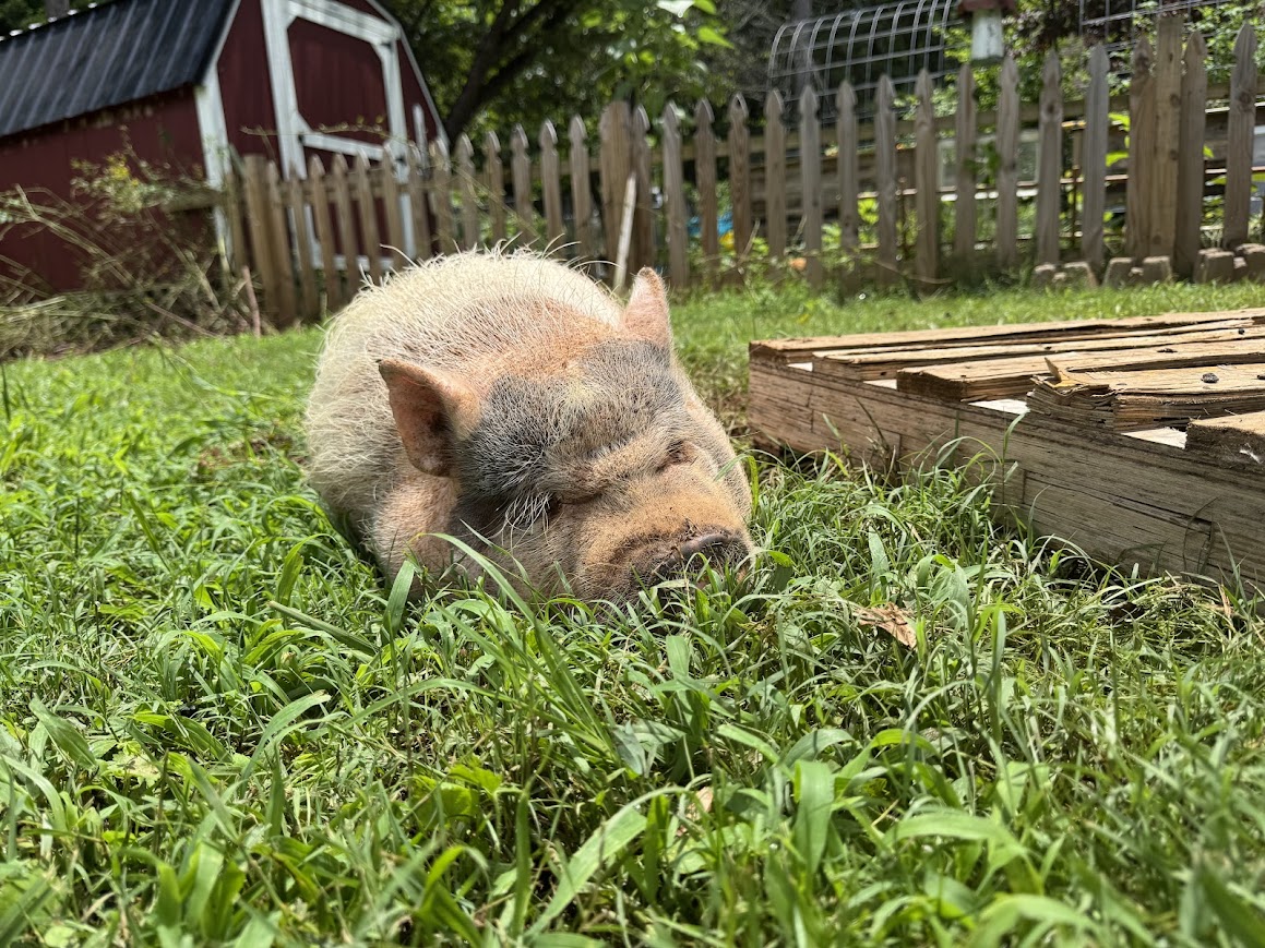 We also have one indoor pig, named Daisy Mae (after the Animal Crossing character). She is a Juliana/Kune Kune mix.