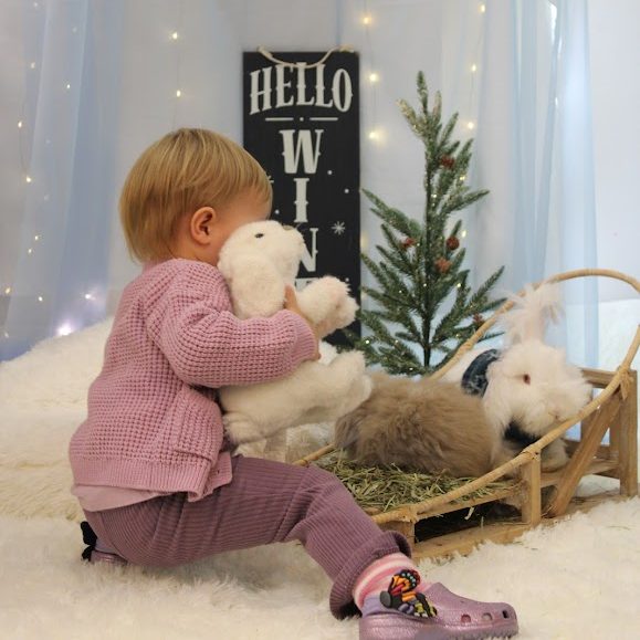 - Fluffy Bunny Storytime: After listening to stories about bunnies from the librarian, children and families had the opportunity to interact with some of our bunnies. We had three rabbits in a large pen that children could feed treats to and watch hop around, and one that was out in a stroller for petting.